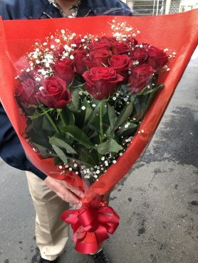 台東区 西浅草へ 赤バラとカスミソウの花束を配達いたしました♪